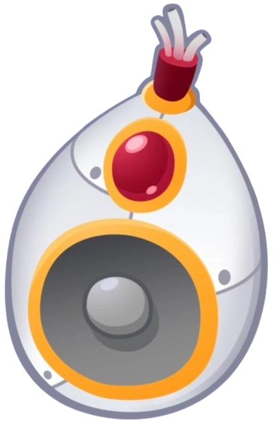 S.P.A.R.K. is a metallic egg-shaped drone with a small red light, broken wire on its top, and speaker. Yellow accents surround the aforementioned parts. It is also held together by bolts. In Angry Birds Reloaded, the broken wire seems to resemble a weirdly designed fuse. Its reskin in Danger Zone is round, has a pig snout and several Hertz horns, all of which are painted red.