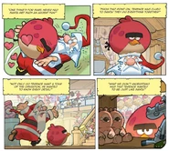 Santa Claus appears in the Holiday Special Issue, first mentioned by an elf taking Red, The Blues, Chuck, and Stella to the North Pole. It is revealed that Terence is a fan of Santa Claus, and he wanted to be like him. Santa takes a break from his job, causing the elves to appoint Terence as their leader. As the elves advertise the "new Santa Claus" to the world, Terence has a hard time trying to deliver all the presents.