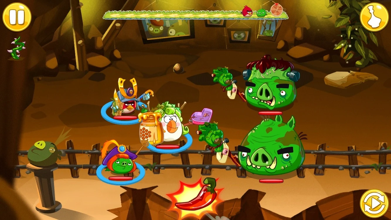 Warning: In every waves, when the Rage Chili is full, use it on Red if you want to smash a high health enemy (it'll be great if you can use Prince Porky's secondary ability before using Red's rage ability), on Matilda if your birds' health is too low (necessary when a Brute Pig or a Witch Doctor hits you too much damage or when your health is too low because 50% of your healing spell has been reduced by the Shamans) and on Adventurer Pig/Prince Porky when you want to damage all enemies at the same time.