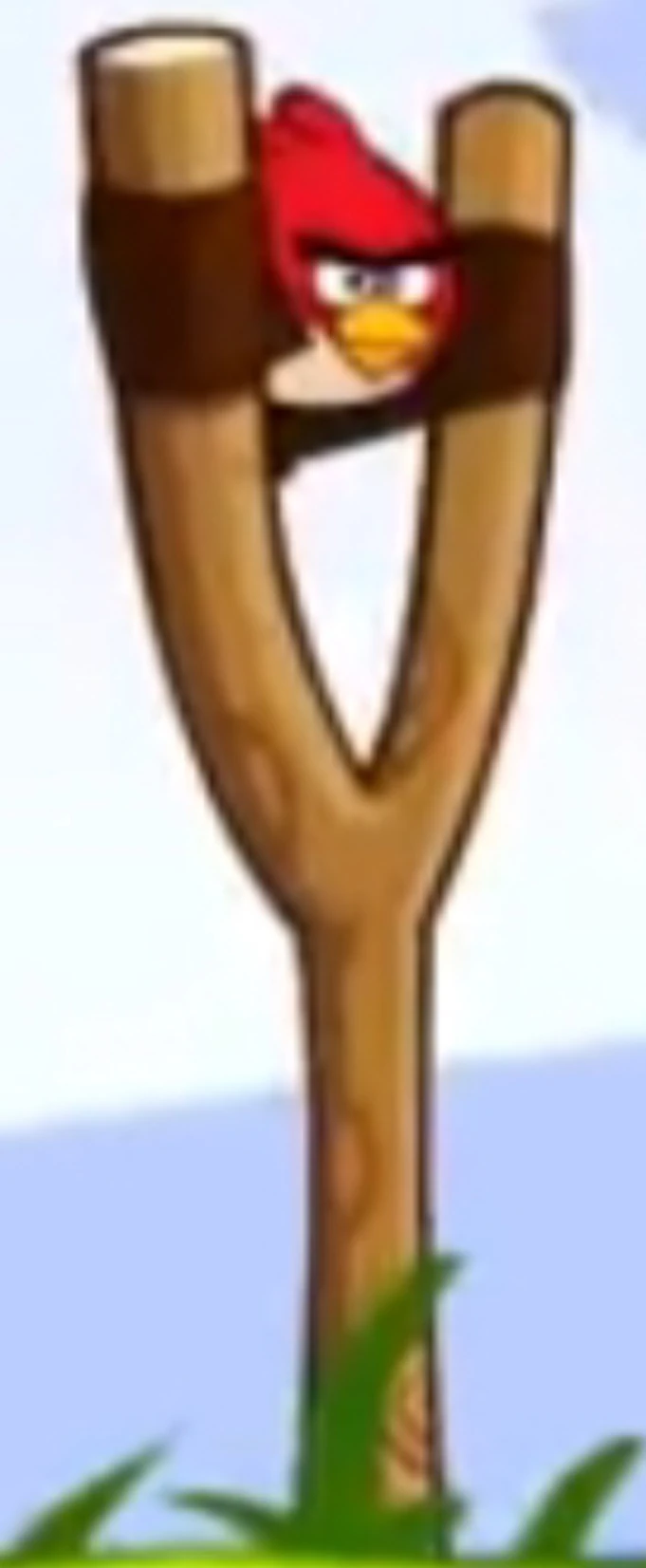 The slingshot or catapult is the main weapon/item/utility the birds use in order to attack the pigs. The player can pull back on the slingshot strap, then release to fire a bird in whatever direction the player desires. The slingshot first appeared in Angry Birds, and every game after that, except in Angry Birds Transformers and a few other games, even in its spin-off, Bad Piggies.