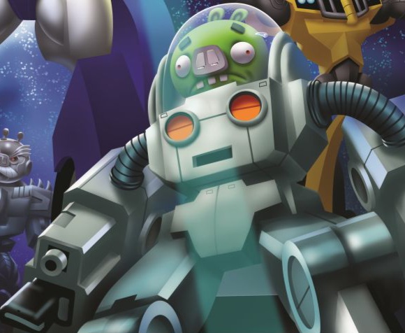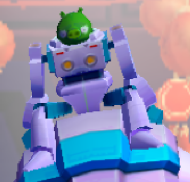 Spike, unlike his mechanical brethren, is an organic Pig that pilots an Exosuit which he uses to assist the Autobirds. The Exosuit itself is a large silver mechanized suit with large blasters for hands and a glass space helmet.