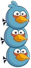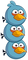 The Blues are the same as in previous slingshot games. When launched, if the player taps them, they will split into 3. They are very strong against glass, but weak against other materials.