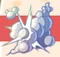 The Blues appears in Bad Piggies as secondary antagonists that first appeared in the cutscenes of When Pigs Fly, where they noticed the pigs trying to steal the eggs, leading into Flight in the Night, where they are prominently featured. In the cutscenes; they pranked the pigs by painting rocks with white paint, tricking them into thinking that they are eggs, beginning the events of the game. Once the pigs find out that they've been tricked, the Blues laugh, knowing that their prank was successful.