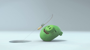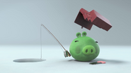 A little piggy went for ice hole fishing. After open a hole with his saw, he took up the fishing rod and fishing with a part of cheese as a bait. But with the part of cheese he didn't fish anything (except of the part of cheese). So, he threw the part of cheese. After that fail, he tried again with a part of meat. But he didn't got anything again so, he threw it again. Now, he tries with a cake, but looks like the fish didn't like it. So, he threw that again. The piggy panicked because he didn't have any more things in the box, except of a saw. After thinking a bit, he tried, with no waiting result, with the saw. Believe it or not, something was pulling the fishing rod. Piggy was very-very happy but when he pulled the fishing rod, only there was, is a part of a rope. But, something strange happened: saw surfaced, opened a hole around the piggy and...