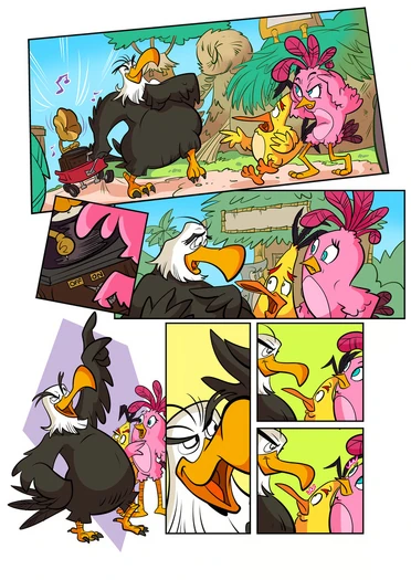 - ↑ @paultobin.bsky.social (2025-03-28). Image not available! Yeah...I don't think we've released any art yet, but Thom Zahler is crafting some beautiful pages, and the guys at @rocketshipofficial.bsky.social have been awesome. Anyway, Angry Birds is what I'm working on today. Bird n' Pig Chaos!. Bluesky. Retrieved on 2025-06-02.