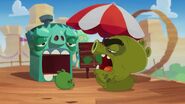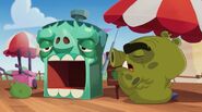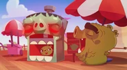 In his first Toons appearance in Mind the Pony, both Bomb and Corporal Pig break his favorite toy pony. This causes him to cry and the other Minion Pigs to cry. Bomb and Corporal Pig go to jail and fix his toy pony in community service, this makes Tiny Minion Pig happy again. In Tiny Minion Pig's solo episode Short and Special, both him and Minion Pig Friend go to the amusement park to get on some rides. Unfortunately, he is stopped by Goliath Pig for being too small to ride. After making countless plans and inventions to try and get on the rides, Goliath Pig eventually feels pity and allows Tiny Minion Pig to ride by a technicality, the tall bump on his head.