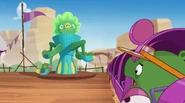 In his first appearance Gloves, he is seen watching Minion Pigs playing with pink rubber gloves. He manages to successfully use the gloves as hands, but the Minion Pigs are unamused and continue using the gloves for stupid reasons, much to his un-amusement. In the episode Stuck In?, several Minion Pigs try to lift Excalibur from its stone. Tiny Minion Pig successfully pulls it out with no effort shown. Expecting the pigs to ask for the sword, they were instead focused on the rock itself and run away with it.