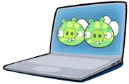 Ultrabook Pigs (Also Known as Ultrapigs) appear in all levels of Angry Birds in Ultrabook™ Adventure. They can be small, medium, large, helmet, mustache, or king. They have an electronic laugh that is different than the normal pig laugh. According to a cutscene, they stole the eggs and went into a computer which gave them yellow markings on their foreheads.