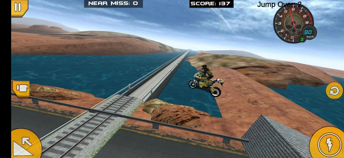 Jump over the obstacles on the Road by performing Gravity Defying Stunts. An Awesome Addictive Bike Stunt Game. Jump over approaching trains. Perform stunts to escape Road Blocks. Get Ready for an Adrenaline Rush![1]