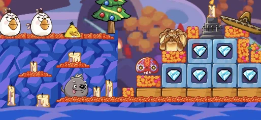 They appear in all levels, they are in the player's side with candles and in order to make them help the player, they must destroy all the candles, which will light the ones near the birds and the dog will flee away, giving 5000 points and calling the Spirit Pigs.