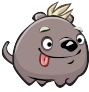 In the game, they are gray small dogs with tiny paws, large black snouts, large eyes, white eyebrows, white hair, small ears and a small tail. They always have their tongues out.